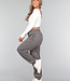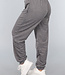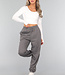Diese Hose ist aus einem weichen Stoff mit leichtem Stretch gefertigt. Sie trägt sich sehr bequem und hat eine hohe Taille. Die Jogginghose hat einen elastischen Bund mit Kordelzug und zwei Seitentaschen auf der Vorderseite. Die Beine sind am Ende mit einer Einfassung versehen, die sie ein wenig aufplustert.