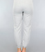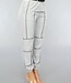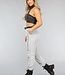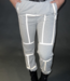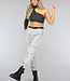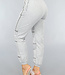Diese Jogginghose ist aus einem weichen grauen Stoff gefertigt. Die Hose hat einen elastischen Bund mit Schlaufen, durch die man den mitgelieferten Gürtel ziehen kann. Auf der Hose verlaufen mehrere reflektierende Linien.