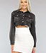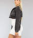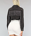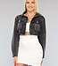 Diese coole Jacke hat einen kurzen Schnitt mit langen Ärmeln und einem Kragen. Auf der Vorderseite befindet sich ein Knopfverschluss mit vier Knöpfen. Sie hat zwei Vordertaschen, die mit Glitzerfransen besetzt sind, die sich auch auf der Rückseite der Jacke und an den Ärmeln fortsetzen. Die Jacke besteht aus robustem Denim und ist perfekt für ein Festival!