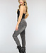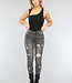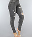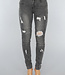 Diese Jeans mit mittlerer Taille ist aus dehnbarer Baumwolle gefertigt. Sie hat einen Reißverschluss und einen einzelnen Knopf an der Vorderseite. Sie hat auch zwei Seitentaschen auf der Vorder- und Rückseite. Die Hose ist dehnbar und hat Risse auf der ganzen Hose und ein Rippendetail am Knie als cooles Detail.