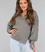 Dieser Pullover ist aus einem schönen weichen Stoff gefertigt. Der Pullover hat einen Druckknopfverschluss am Hals. Dieser Druckknopfverschluss besteht aus zehn Druckknöpfen und ermöglicht es Ihnen, zu entscheiden, ob der Kragen als Rollkragen oder umgeschlagen sein soll. Außerdem hat der Pullover lange Ärmel und einen Schlitz an den Seiten. Außerdem hat der Pullover sichtbare Nähte, die einen ausgefransten Look haben.