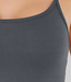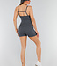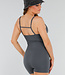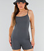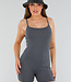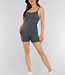 Dieser graue Playsuit ist aus Rippstoff mit Stretch gefertigt und hat eine eng anliegende Passform. Die Spaghettiträger an den Schultern sind verstellbar und am Rücken mit einem zusätzlichen horizontalen Band verbunden, damit sie nicht von den Schultern rutschen. Die weiche Rippenstruktur und der dehnbare Stoff sorgen dafür, dass es sich Ihrem Körper anpasst und eng anliegt. Perfekt für einen Sommerlook oder ein Festival-Outfit.