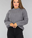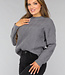 Grauer Strickpullover mit aufwändigem Muster