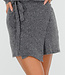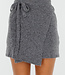 Dieser graue Rock ist aus einem weichen, dehnbaren Strickstoff gefertigt. Das Modell hat einen Überwurf vorne, der mit einem Kordelzug an der Seite geschlossen wird. Der Rock reicht bis knapp über das Knie und hat einen geraden Schnitt hinten. Dank der Strickstruktur ist der Rock bequem zu tragen und behält seine schöne Passform.
