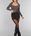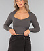 Graues Top aus geripptem Stoff mit offenem Ausschnitt
