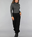 Dieses Oberteil ist aus einem feinen Stoff mit viel Stretchanteil gefertigt. Das Oberteil hat einen kleinen Rollkragen und lange Ärmel. Das Top hat eine normale Passform und hat schwarze Patches an der Seite.