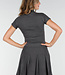 Dieses Oberteil ist aus einem robusten und dehnbaren Material gefertigt und hat eine taillierte Passform. Es hat kurze Ärmel und einen Rollkragen mit einer leichten Falte. Der Stoff ist komplett einfarbig.