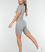 Graues Kurzarm-Sport-Set Jacke und Korrektur-Shorts mit hohem Bund