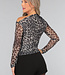 Dieses Stretch-Top ist aus einem sehr dehnbaren Netzstoff gefertigt. Das Oberteil hat lange Ärmel, die auf einer Seite knapp über die Schulter fallen. Der Ausschnitt ist drapiert und an der Seite gibt es ein hübsches plissiertes Detail.