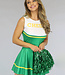 Dieses niedliche Karnevalskostüm besteht aus einem kompletten Cheerleader-Kleid mit einem Neckholder-Modell. Der Rock des Kleides ist plissiert und fällt schön weit. Auf der Brust des Kleides befindet sich der Schriftzug "Cheer". Das Kleid ist mit verschiedenen Streifen versehen. Das Outfit wird komplett mit glitzernden Pompons und hohen Sportstrümpfen geliefert!