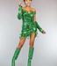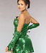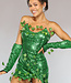 - Grünes Kleid mit Pailletten und Blättern