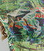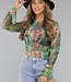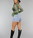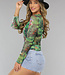 Grünes asymmetrisches Mesh-Top mit Trompetenärmeln