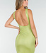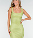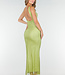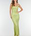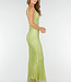 Dieses lange Kleid hat eine figurbetonte Passform mit geradem Ausschnitt und breiten Trägern. Der Stoff ist mit kleinen Strasssteinen besetzt, die für einen funkelnden Effekt sorgen. Auf der Rückseite hat das Kleid einen tiefen Ausschnitt. Das Material enthält Stretch, wodurch das Kleid bequem sitzt.