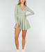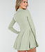 Dieses grüne Tenniskleid hat ein eng anliegendes Oberteil mit Überwurf und einen ausgestellten Rock. Der geschmeidige Stretchstoff fühlt sich glatt und weich an und bewegt sich bequem mit. Das Modell hat lange Ärmel, einen dezenten Kragen und eine passende Hose aus dem gleichen Stoff für zusätzliche Abdeckung beim Bewegen. Die einfarbige grüne Farbe und das kurze, sportliche Modell verleihen dem Kleid einen frischen, modernen Look, der sich ideal für Tennis, Padel oder einen sportlich-lässigen Look eignet.
