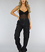 Diese fantastische Cargohose hat einen Baggy-Schnitt. Die Hose hat zwei Cargotaschen an der Seite, zwei Einschubtaschen vorne und zwei Einschubtaschen auf der Rückseite. Die weißen Nähte geben der Hose ein besonders schönes Detail. Die Beine der Hose sind weit.