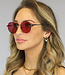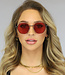 Diese metallfarbene Sonnenbrille hat rote runde Gläser, die ihr einen klassischen Look verleihen. Sie sind recht schlicht gehalten, so dass man sie mit vielen Outfits kombinieren kann. Außerdem hat die Sonnenbrille Nasenpads.