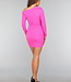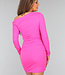 Dieses Kleid ist aus einem feinen Stretch-Stoff gefertigt. Es hat lange Ärmel und einen schönen Ausschnitt an der Schulter, so dass es halb über die Schulter fällt. In der Taille ist das Kleid in Falten gelegt, wodurch es gut sitzt und einen schönen Effekt hat. Dank des feinen Stretchanteils lässt es sich leicht an- und ausziehen.