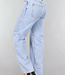 Diese Jeans ist aus Baumwolle gefertigt und hat einen weiten Beinschnitt. Sie fällt in der Mitte der Taille. Die Jeans hat zwei Eingrifftaschen vorne und zwei Gesäßtaschen. Sie ist perfekt für jede legere Gelegenheit! Diese Jeans enthält keinen Stretchanteil.