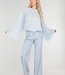 Light Blue Blouse with Wide Sleeves and Round Neck