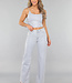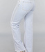 Diese Jeans hat einen glamourösen Look. Sie hat einen Reißverschluss und einen Knopfverschluss auf der Vorderseite. Diese Jeans hat zwei Seitentaschen auf der Vorderseite und zwei Gesäßtaschen auf der Rückseite. In der Taille befinden sich fünf Schlaufen, durch die Sie Ihren eigenen Gürtel tragen können. Die Jeans hat einen Stretch-Anteil. Die Hose hat viele Strasssteine auf der Vorderseite der Jeans. Außerdem ist die Hose mit einem ausgefransten Look an den Beinenden versehen.