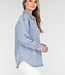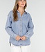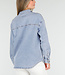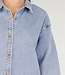 Diese Jeansbluse ist aus hellblauem Denim mit einer geschmeidigen Stretchstruktur gefertigt. Das Modell hat einen klassischen Kragen und eine durchgehende Knopfleiste auf der Vorderseite. Die Bluse hat lange Ärmel mit Manschetten, die mit einem Knopf geschlossen werden. Die Passform ist gerade und fällt locker über den Körper.