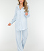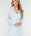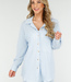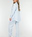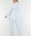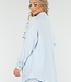 Dieses dehnbare hellblaue Set besteht aus einer luftigen, abgerundeten Bluse mit Hornknöpfen und einer geraden Hose mit Gummibund. Die Bluse hat lange Ärmel, übergroße Taschen und Manschetten. Der Crinkle-Stoff verleiht dem Set eine lässige Wirkung und sorgt für einen angenehmen Tragekomfort. Die Hose mit geradem Bein fällt sanft und ist perfekt für warme Tage. Tragen Sie es als kompletten Look oder kombinieren Sie die losen Teile mit anderen Basics für ein abwechslungsreiches Outfit.