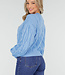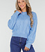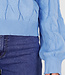 Dieser blaue Pullover ist aus grobem Zopfstrick gefertigt und hat einen klassischen Rundhalsausschnitt. Die langen Ärmel sind leicht oversized und enden in gerippten Bündchen für eine bequeme Passform.