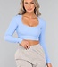 Das perfekte Basic ist dieses Oberteil mit kurzem Schnitt und langen Ärmeln. Das Oberteil ist aus einem gerippten Stoff gefertigt und hat herausnehmbare Pads. Das Oberteil hat ein hübsches Spitzendetail am Halsausschnitt, das über den Rücken verläuft.