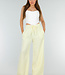 Gelbe weiße Baumwollhose mit hoher Taille und dekorativer Schleife