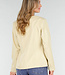 Dieser hellgelbe Blazer hat eine taillierte Passform, die die Silhouette schön betont. Der Blazer hat drei gepolsterte Knöpfe auf der Vorderseite und einen tiefen V-Ausschnitt ohne Revers. Die langen Ärmel und sorgfältig platzierten Teilungsnähte sorgen für einen eleganten, gepflegten Abschluss. Der Stoff ist fest, aber leicht elastisch, sodass der Blazer bequem sitzt und seine Form behält. Perfekt zu kombinieren mit einer Hose oder einem Rock für einen stilvollen, modernen Look.