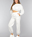 Dieses schöne Lounge-Set besteht aus einem weichen Stretch-Stoff und ist einfarbig, sodass Sie Hose und Oberteil auch einzeln kombinieren können. Der Pullover hat einen kurzen Schnitt und lange Ärmel mit Bündchen. Die Hose hat eine hohe Taille und einen elastischen Bund mit Kordelzug. Sie hat zwei Seitentaschen und die Beine sind mit einem Gummizug versehen, so dass sie eng am Knöchel anliegt.