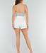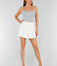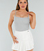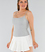 Dieses Basic-Top ist aus einem festen Stretch-Mischgewebe gefertigt und hat einen quadratischen Ausschnitt mit dünnen Spaghettiträgern. Die herausnehmbaren festen Cups bieten Halt und Form ohne Bügel. Dank der dickeren Qualität schimmert das Material nicht durch und das Oberteil bleibt an Ort und Stelle. Das Modell hat eine eng anliegende Passform, die dem Körper folgt. Ideal, um es locker zu tragen oder unter einem schönen Blazer zu kombinieren.