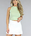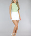 Dieses hübsche Oberteil ist aus einem weichen Rippstoff gefertigt. Das Top ist ärmellos und hat einen hohen Ausschnitt. Außerdem hat das Oberteil einen dezenten Cropped-Schnitt.