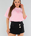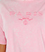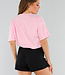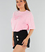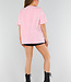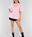 Dieses hellrosa Oversized-T-Shirt im Vintage-Look hat eine gerade Passform, einen Rundhalsausschnitt und kurze Ärmel, die aufgrund der Oversized-Passform bis zur Mitte des Arms reichen. Der Schriftzug "Paris Milano" ist in derselben Farbe wie der Stoff auf die Brust gestickt und sorgt für einen dezenten tonalen Look. Das Shirt ist aus Stretchmaterial gefertigt, das sich bequem an den Körper anpasst.