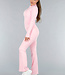 Dieses Sport-Set ist aus einem Stretch-Stoff und hat eine feste Farbe. Die Weste hat lange Ärmel und einen Reißverschluss über die gesamte Vorderseite der Weste, sie hat auch dekorative Nähte, die die Taille betonen. Außerdem hat sie Daumenlöcher. Die Leggings hat einen hohen, überlappenden Bund und ausgestellte Beine.