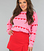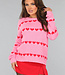 Dieser Pullover ist aus einem schönen weichen Strickmaterial gefertigt und hat einen niedlichen Aufdruck. Der Pullover hat einen runden Halsausschnitt und lange Ärmel. Außerdem hat der Pullover eine Rippstrickbordüre am Halsausschnitt, unten und unten an den Ärmeln. Was dem Pullover einen süßen Look verleiht, sind die Herzen auf dem Pullover.