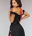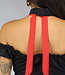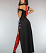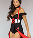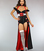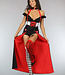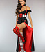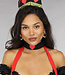 Dieses sexy Kostüm besteht aus einem schulterfreien Bodysuit. Am Hals befinden sich zwei Träger, die Sie im Nacken binden können. Der Body hat eine schöne Schnürung im Korsett-Stil am Bauch, die mit Herzen verziert ist. Das Set wird mit einem Rock geliefert, den du über dem Body tragen kannst. Der Rock hat oben eine Schnalle, mit der er sich leicht an- und ausziehen lässt. Um den Look zu vervollständigen, kannst du die mitgelieferten Strümpfe, das Halsband und das Diadem tragen.