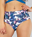Bikini mit hoher Taille und plissiertem Unterteil mit Blattdruck