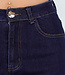 Diese dunkelblaue High-Waist-Jeans ist aus robustem Denim mit leichtem Stretchanteil für eine bequeme Passform gefertigt. Die Hose hat gerade, weit ausgestellte Hosenbeine und einen hohen Bund, der schön sitzt. Die kontrastierenden Nähte und der klassische Fünf-Taschen-Stil verleihen der Jeans einen coolen Denim-Look. Mit goldfarbenem Knopf und Reißverschluss zu schließen. Kombinieren Sie sie mit dem passenden Oberteil zu einem abgestimmten Set.