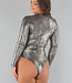 Dieser tolle Glitzerbody ist aus einem Stretch-Stoff gefertigt und hat lange Ärmel. Der Body fällt eng und hat einen hohen Halsausschnitt. Außerdem hat er einen lustigen Glitzeraufdruck. Unten hat er einen Hakenverschluss, der aus zwei Haken besteht, die du in drei Positionen einstellen kannst.