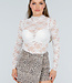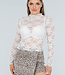 Dieses elegante Oberteil in Weiß ist aus weicher, feiner, dehnbarer Spitze gefertigt, die wunderbar passt. Der Stoff ist dehnbar und sorgt für einen perfekten Sitz und Leichtigkeit bei jeder Bewegung. Außerdem haben die Ärmel einen hübschen Abschluss mit einem zarten Saum. Eine ideale Wahl für einen schicken Anlass, bei dem Sie stilvoll und raffiniert aussehen möchten.