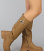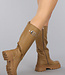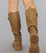 Diese Stiefel fallen bis knapp unter das Knie und sind aus einem Material in Lederoptik gefertigt. Sie haben einen dezenten kleinen Absatz an der Unterseite. An der Innenseite befindet sich ein Reißverschluss, der das An- und Ausziehen erleichtert. Die Stiefel sind mit einem silbernen Detail verziert. Schlicht in der Farbe, daher leicht zu kombinieren. Passt sowohl zu Jeans als auch zu einem Rock oder Kleid!