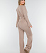 Diese beige Strick-Loungehose kombiniert ultimativen Komfort mit einer weichen, fein gestrickten Textur, die gleichmäßig und vollständig einfarbig ist. Der Bund hat einen breiten, gerippten Strickbund für zusätzlichen Komfort und ist mit einem langen Kordelzug mit identischer Strickstruktur versehen. Die Hosenbeine fallen gerade und weit nach unten, mit dezenten Rippstrickbündchen an der Unterseite für einen sauberen Abschluss. Der Stoff ist warm und dehnbar.
