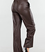 Diese braune Hose ist aus einem Material in Lederoptik gefertigt. Das Modell hat einen elastischen Bund und gerade, weite Hosenbeine. Die Hose ist lang geschnitten und hat zwei Seitentaschen und eine aufgesetzte Gesäßtasche. Das Material hat einen dezenten Glanz und eine geschmeidige Struktur.