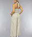 Diese Hose ist aus einem luftigen Leinenstoff gefertigt. Die Hose ist ecrufarben und hat weite Beine. Die Hose hat eine Schnürung an der Taille. Bequem und super einfach zu kombinieren!