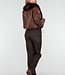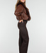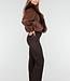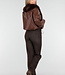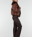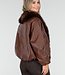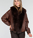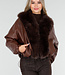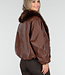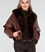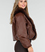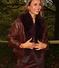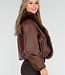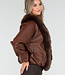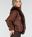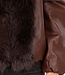 Diese dunkelbraune Jacke ist aus einem geschmeidigen Lederimitatstoff gefertigt und hat einen großzügigen Kragen aus Kunstfell in passender Farbe. Das Modell hat abgesenkte Schulternähte, eine gerade Passform und zwei Eingrifftaschen auf der Vorderseite. An beiden Seiten sind verstellbare Kordelzüge angebracht, mit denen das Modell dezent tailliert werden kann.