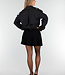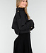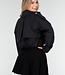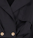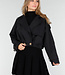 Dieser schwarze, kurz geschnittene Trenchcoat hat eine kurze, gerade Passform und ist aus einem festen, gewebten Stoff mit matter Oberfläche gefertigt. Die Jacke hat eine doppelte Knopfleiste vorne und einen breiten Reverskragen. Die Schultern sind mit Epauletten mit Knopfdetail versehen und der Rücken hat eine dekorative Klappe. Die Ärmelbündchen sind mit verstellbaren Bändern mit Knopfverschluss versehen.
