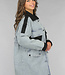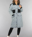 Diese Jacke ist aus Jeansstoff gefertigt und hat lange Ärmel. Die Jacke hat einen schwarzen Umlegekragen und ist an den Schultern mit Schulterklappen versehen. Auf der Brust hat die Jacke eine Brusttasche mit Klappenverschluss auf beiden Seiten. Die Tasche ist schwarz und der Verschluss ist aus Denim. Außerdem hat die Jacke zwei weitere Seitentaschen mit Pattenverschluss. Auf diesen Taschen befinden sich zwei schwarze Druckknöpfe. Die Manschetten der Ärmel haben schwarze Details mit schwarzen Druckknopfverschlüssen. Die Jacke selbst kann mit fünf schwarzen Druckknöpfen geschlossen werden.