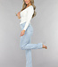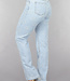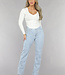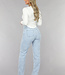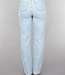 Diese Jeans sind aus einem Baumwoll-Denim-Stoff hergestellt. Das Modell der Jeans hat ein gerades Bein und eine hohe Taille. Sie wird vorne mit einem Reißverschluss und einem einzigen Knopf geschlossen. Die Jeans hat zwei Eingrifftaschen vorne und zwei Gesäßtaschen. Um die Taille herum befinden sich fünf Schlaufen, durch die man einen Gürtel tragen kann. Die Hose ist dehnbar, was sie sehr angenehm zu tragen macht. Einzigartig sind die gerüschten Sterne, die der Hose einen einzigartigen Look verleihen.