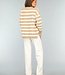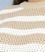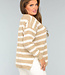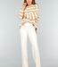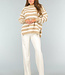 Dieser Pullover ist aus einem wunderbar weichen Strickmaterial gefertigt. Der Pullover hat einen Rundhalsausschnitt und lange Ärmel. Außerdem hat der Pullover einen Schlitz an den Seiten und ein Streifenmuster. Der Pullover hat außerdem Rippstrickbündchen am Halsausschnitt, am Saum und am unteren Ende der Ärmel.